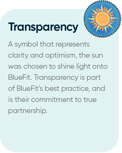 In the centre of the artwork is a beautiful big meeting place to represent BlueFit as a nationwide organisation where community members come together to enjoy leisure centres, community sport and recreational programs. Branching out of this meeting place are 6 interconnected symbols which have been strategically chosen to reflect BlueFit’s values.